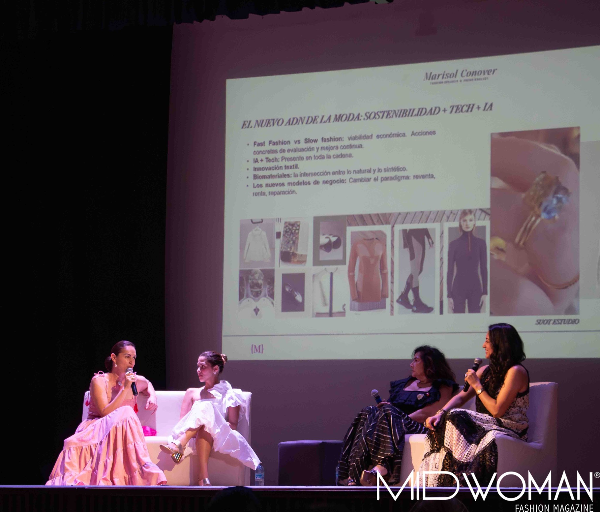 Participaron como panelista Paola Hinojos, directora de Fashion Group International México; Vero Díaz, diseñadora mexicana con más de una década de experiencia en la industria de la moda, Mora Ruiz, diseñadora yucateca con una amplia colaboración con artesanas; y como moderadora Marisol Conover, analista de tendencias en el sector de la moda en Latinoamérica.