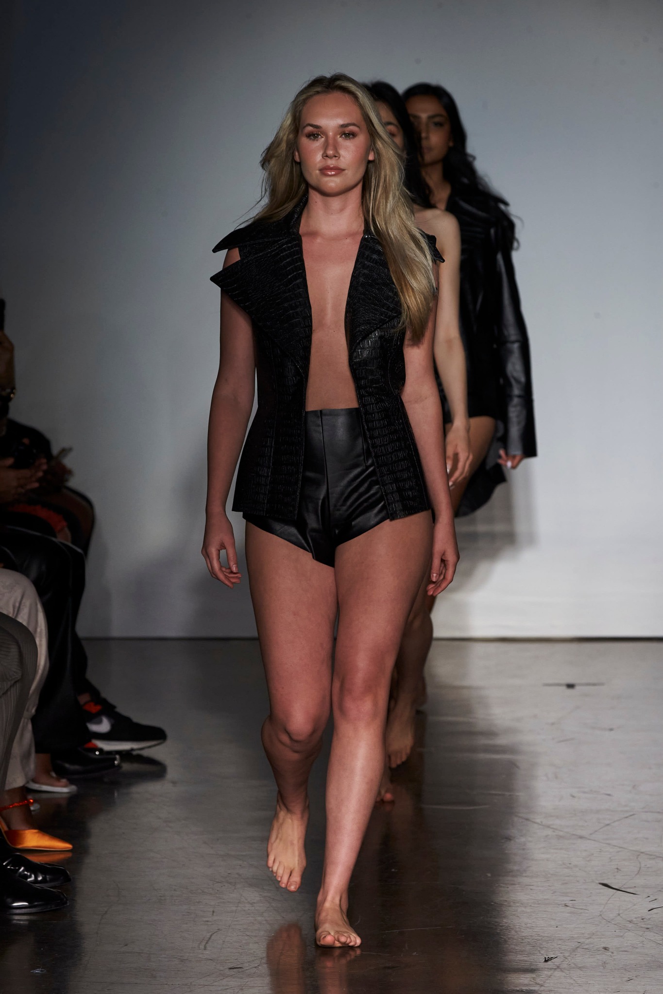 Esta marca trabaja principalmente con telas sin usar, dándoles una nueva vida y aplicándola a diseños sostenibles hechos a la medida. En esta ocasión se inspiró en la colección Miss S and M F/W 1992 de Gianni Versace con su vinilo negro y piel sintética y creó una línea para mujeres en la que no existen en las tallas, como una muestra de aceptación de cada cuerpo.