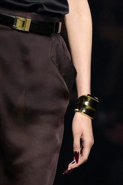 4. Brazaletes gruesos: En las últimas temporadas, las principales casas de moda han mostrado con naturalidad que los brazaletes gruesos en la muñeca son igual de impresionantes que cualquier otra joya. Un brazalete de estos podría ser el único accesorio que utilices en las muñecas.