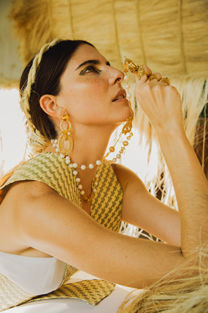 Lydia Lavín tomó como inspiración las fincas henequeneras. Podemos ver colores que encontramos en la naturaleza y en fibras naturales como el algodón, el henequén, entre otros. También se retoman glifos ancestrales y colores neutros, así como lo colorido de las tradiciones mexicanas que se refleja en las distintas flores y bordados del país.
