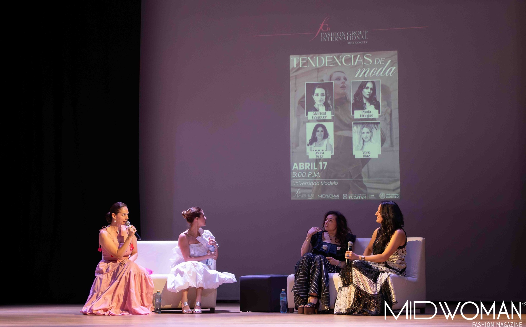 Participaron como panelista Paola Hinojos, directora de Fashion Group International México; Vero Díaz, diseñadora mexicana con más de una década de experiencia en la industria de la moda, Mora Ruiz, diseñadora yucateca con una amplia colaboración con artesanas; y como moderadora Marisol Conover, analista de tendencias en el sector de la moda en Latinoamérica.