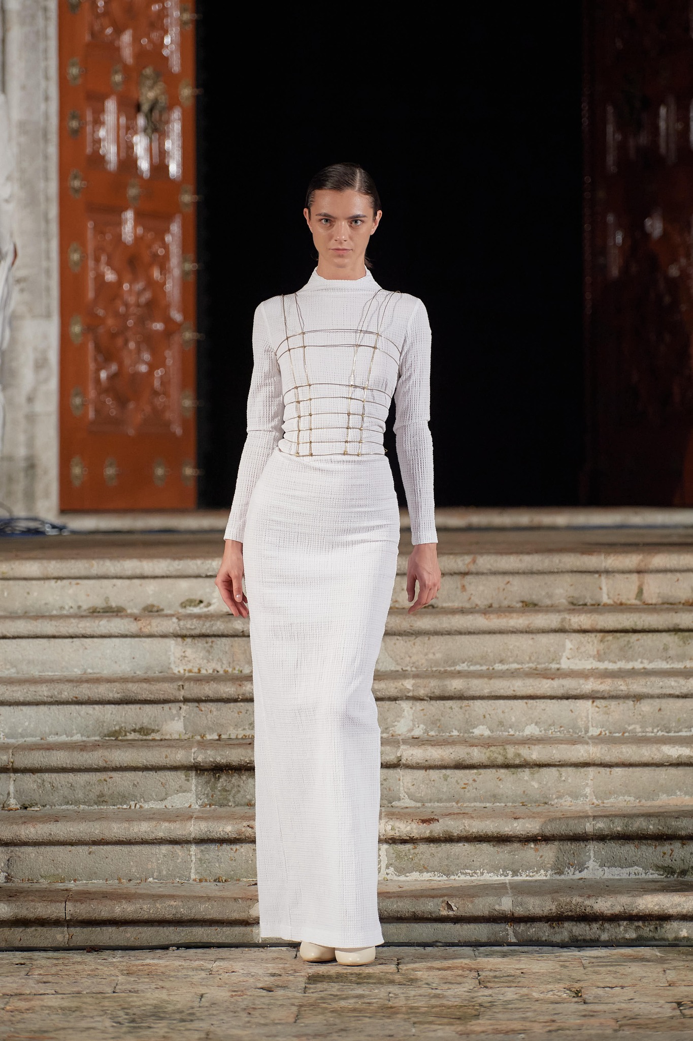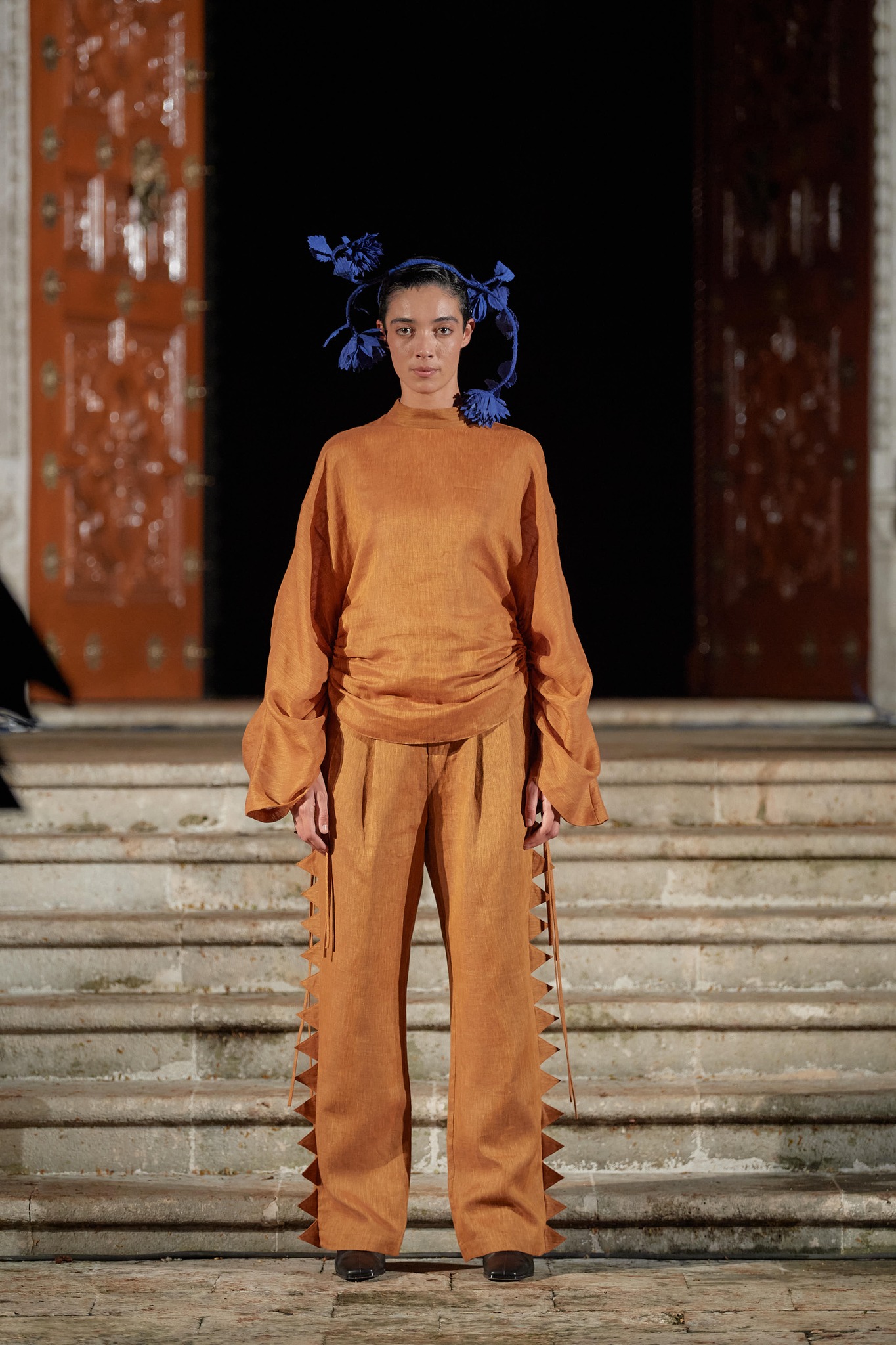Vértebras representa un recorrido amable a través de un paisaje mexicano el cual termina con una vista preciosa, cada paso, es decir, cada momento en el que se decide revisitar y reinventar una silueta pensando en Frida, su confección, el patronaje y la ejecución de cada prenda han sido una experiencia llena de cariño, emoción y satisfacción, igual que quien mira un álbum de fotografías y se ve crecer.