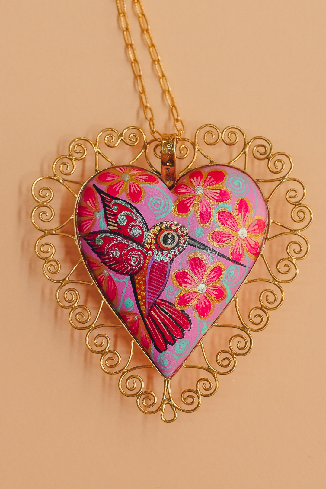 Los artesanos pintaron en cada corazón elementos florales, y posteriormente, los orfebres lo decoraron con diversos materiales como plata, oro, ónix, perlas, circonias o cristales.