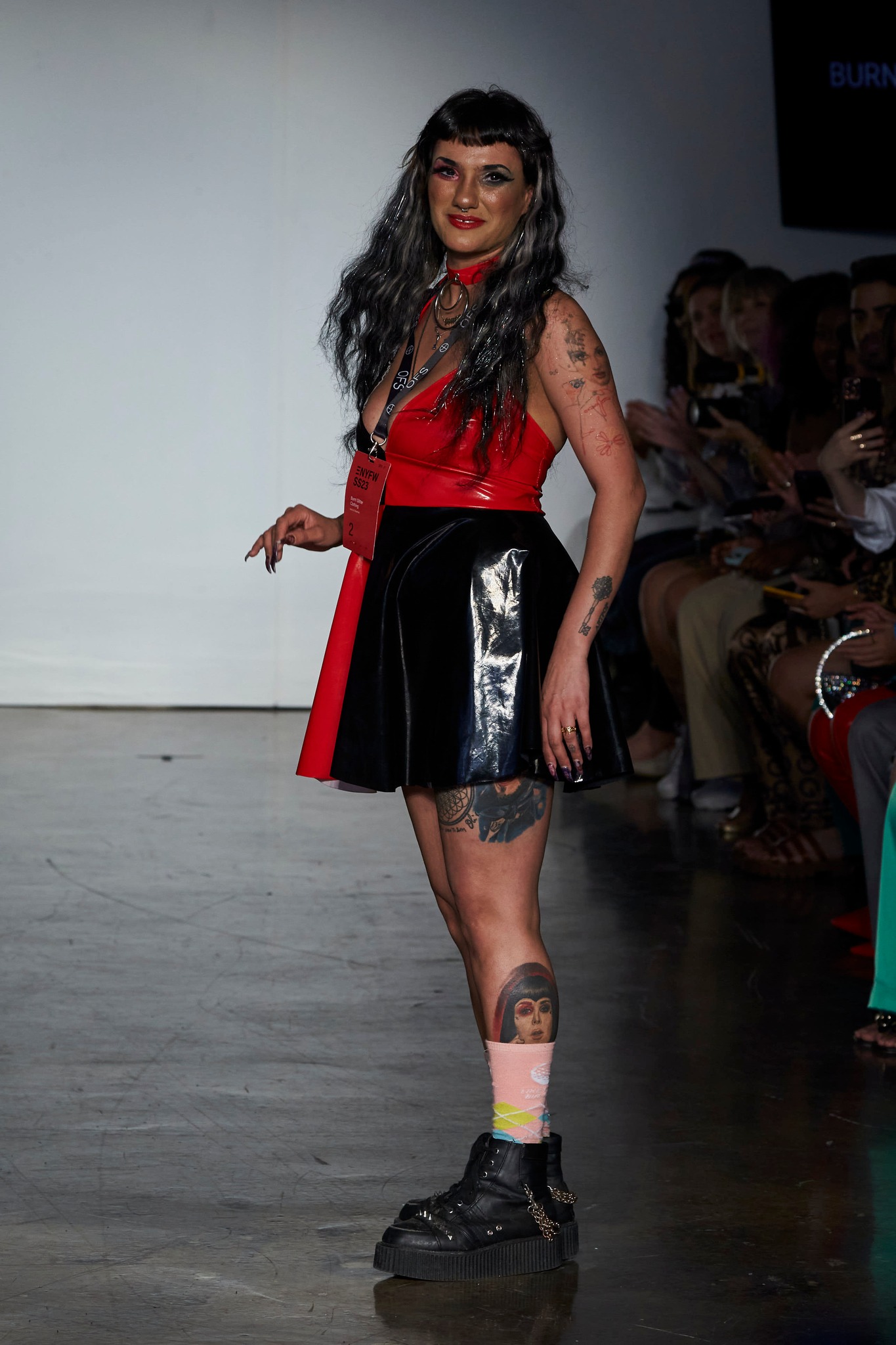 Esta marca trabaja principalmente con telas sin usar, dándoles una nueva vida y aplicándola a diseños sostenibles hechos a la medida. En esta ocasión se inspiró en la colección Miss S and M F/W 1992 de Gianni Versace con su vinilo negro y piel sintética y creó una línea para mujeres en la que no existen en las tallas, como una muestra de aceptación de cada cuerpo.