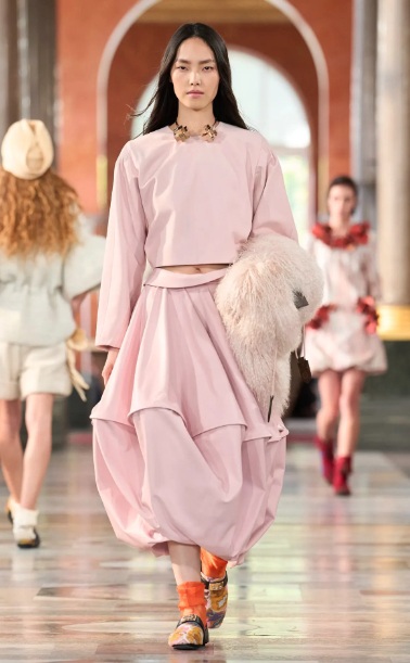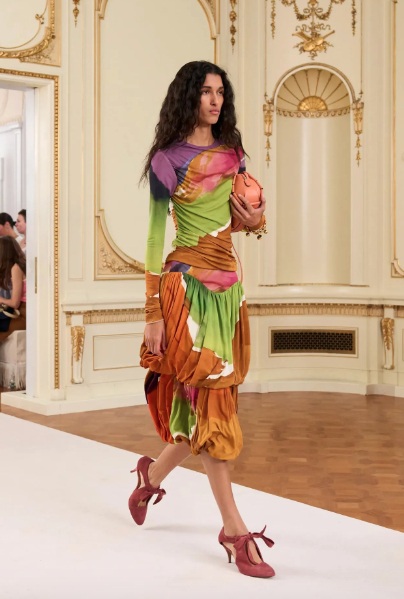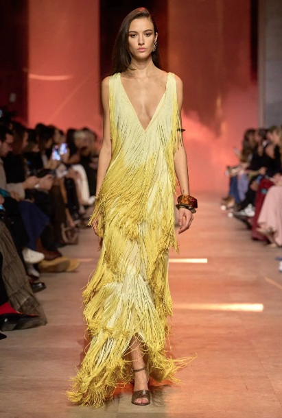 Los flecos regresan con teatralidad sutil, acompañando cada paso, convirtiendo el movimiento en una experiencia visual. Brocados ligeros y tejidos fluidos añaden dinamismo a la primavera.