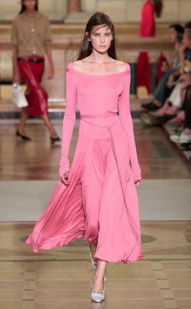 La temporada se expande hacia amarillos mantequilla, menta pastel, lavanda suave y granates intensos. El rosa pálido redefine la dulzura con sofisticación, mientras los naranjas cálidos y rojos óxido evocan energía que eleva el ánimo y transforma el día: dopamine dressing.