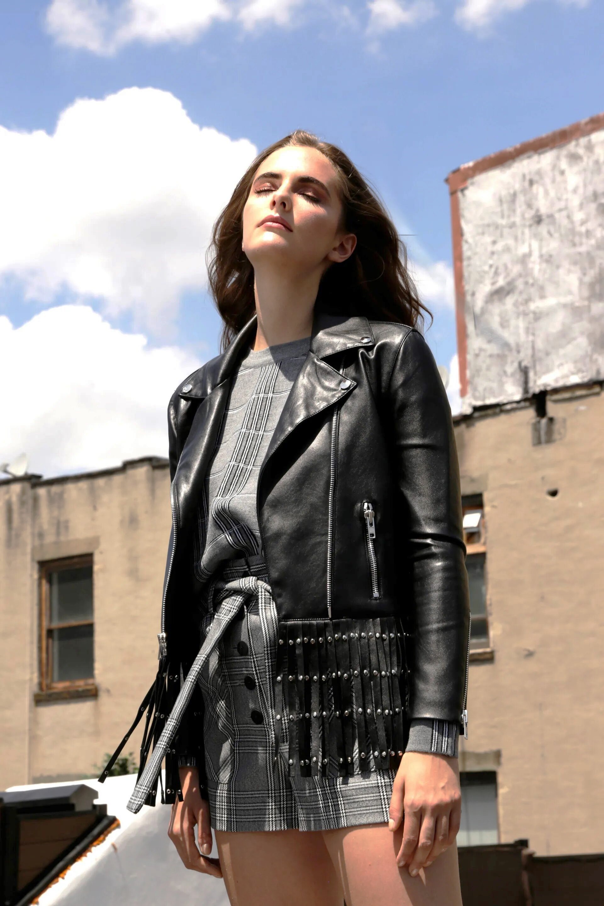 Chamarra de cuero con detalles metálicos: