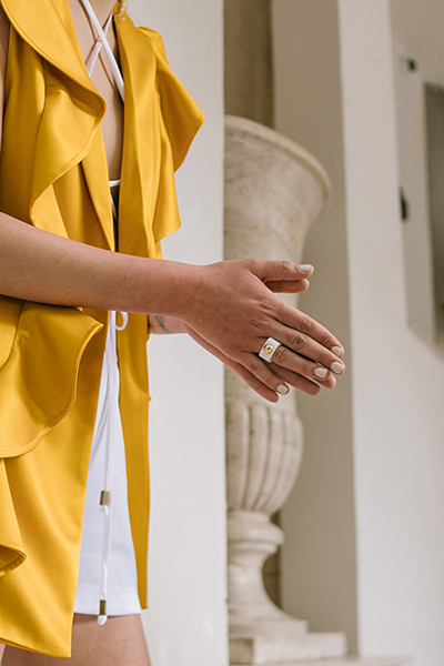 La colaboración con Vero Díaz surge de la iniciativa de Zaira. Ambas pudieron concretar las ideas e iniciaron una colección de joyería tomando las prendas de Vero Díaz como inspiración. De ahí surge el reto de trabajar otros materiales buscando la sustentabilidad. Gracias a esta colaboración Marino empieza a trabajar un material reciclable y reutilizado que se llama Krion de porcelanosa. El resultado ha sido increíble, de esta experiencia queda una colección fabulosa, así como muchos aprendizajes creativos. Otra colaboración fue con la diseñadora Mónica Almada que sumó a Marino la inspiración por Brasil y sus playas. Al igual que con Vero Díaz, el resultado fue una unión tan orgánica de conceptos que se tradujo en piezas increíbles.